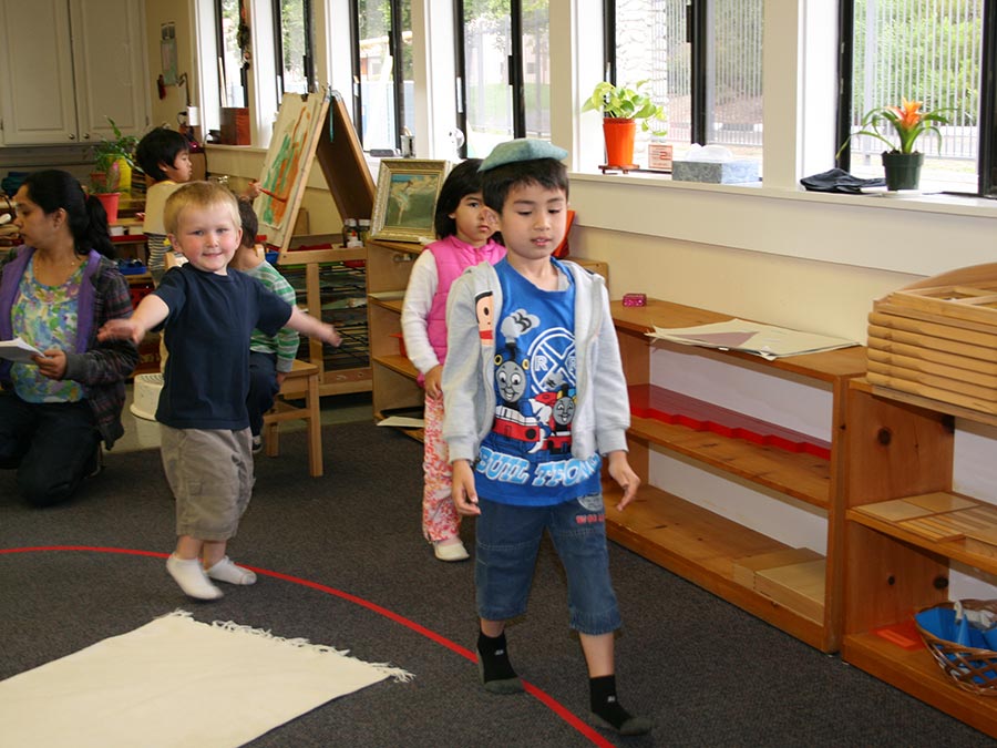 So when we look at an active, rambunctious 3-year-old running into our classroom on the first day of school, we do not see a misadjusted or hyperactive child. We see a child at the cusp of a sensitive period for movement, a child whose mind and body are calling for an opportunity to concentrate, a child who, in a carefully prepared environment full of enticing stimuli, will bring his abundant physical energy under the control of his will. We are excited to welcome him into our midst, and to experience together with you, his parents, the wonderful journey of growth as this little person learns to master his body to manifest his own unique personality.