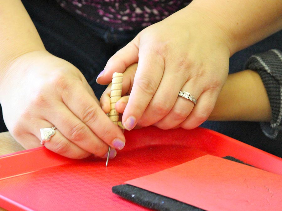 - A three-year-old may be carrying a heavy wooden block with inset cylinders from a shelf to a table. He’s straining his upper body muscles to heft this huge object; he’s exercising control over his arm muscles as he carefully holds it level lest the cylinders crash down on the floor. He controls the speed of his movement as he sets it down on the table, trying to do so without a sound. All that, before he has even begun the work of removing the knobbed cylinders and replacing them with a three-finger grip!