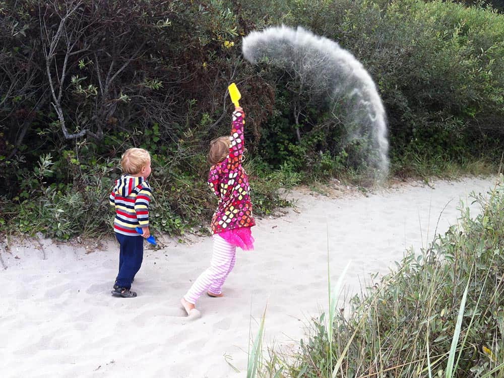 - Point out and name what you observe in the world about you. Just like we give children words in the classroom—for leaf shapes, for rocks, for land and water forms—you can provide much vocabulary in response to your child’s gaze and interests. Don’t worry if you don’t know all the scientific terms yourself: often, it’s helpful to just describe what you see—the bright red color of a maple leaf in autumn; the warmth of the sun on your skin; the fact that the sand is wet on the beach where the high tide covered it. If you can, and if your child is interested, do provide short explanations, of course—and use questions you can’t answer as a jumping-off point for joint research at home!