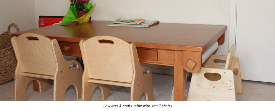 - Small chairs and tables facilitate independent snack time and organized playtime. Provide some buckets, sponges, rags, and child-sized brooms, and your child can even clean up after himself.