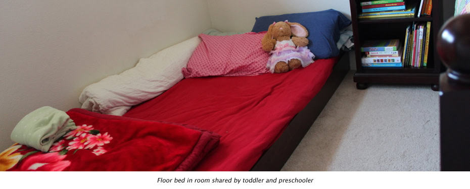 - Consider a floor or other low bed. Some Montessori parents never have cribs; instead, they baby-proof an entire room and let even infants sleep on a floor bed. While this may not work for every parent, a low bed or a twin mattress on the floor can be a great step up after a crib, instead of a toddler bed.
