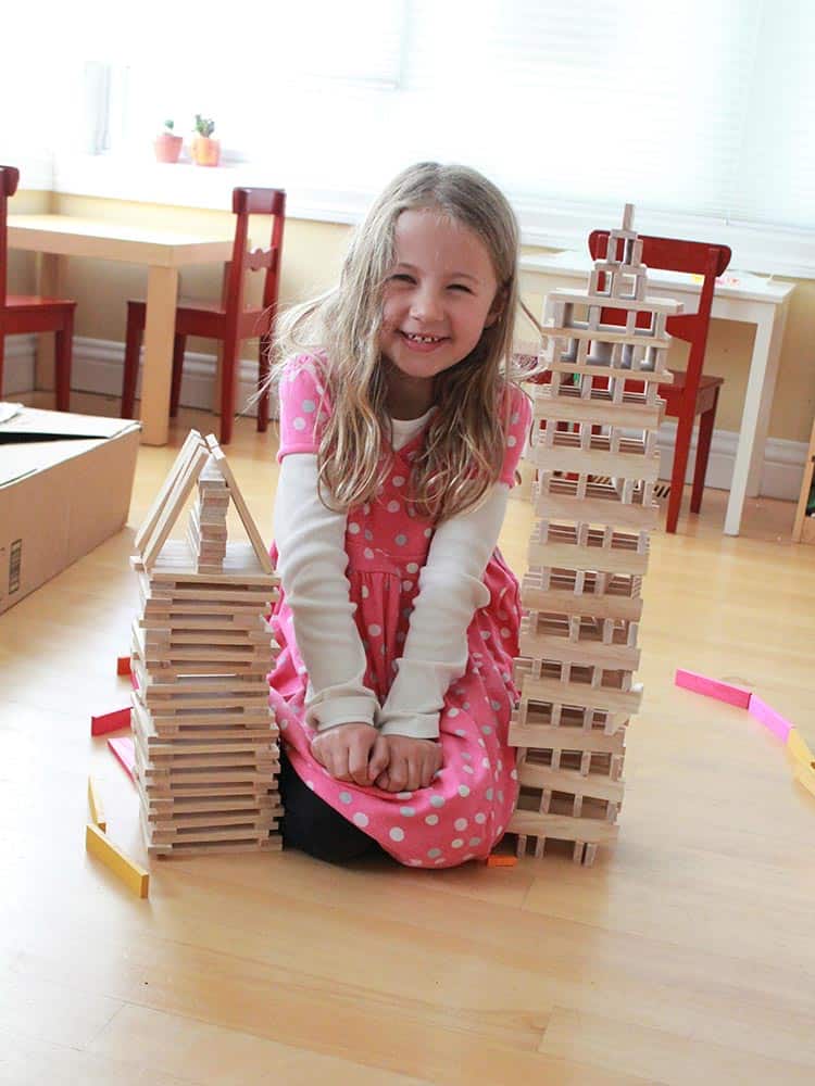 - Provide plenty of unstructured, multi-purpose play materials. The best playthings can be used in many different ways: often, an empty box is all children need (although it helps to also have scissors, paper, string and sticks). Other great items are all kinds of building materials, such as Legos, Citiblocs, Zoobs, Magformers, Zometools, Lincoln Logs and Tinker Toys. At my daughter’s Montessori school, they take building to a different level with Builder Boards, a full-size version of Lincoln Logs that children build elaborate play forts with! A variety of stuffed animals, trains and trucks can also come in handy, as can your permission to repurpose household items, from couch cushions to old sheets, from your clothes for dress-up, to kitchen utensils. The more open-ended, the better: children are much more creative if you buy boxes of Lego parts to freely build with, rather than elaborate sets that need to be built a specific way. (In our house, all but one of these sets has been disassembled and put into the box of bricks, and I’ve given up any effort to keep the pieces of even elaborate, gifted items like a fire truck together.)