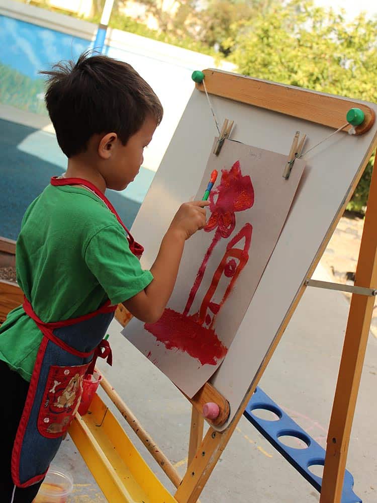 - Give access to different types of art materials (not project-specific crafts kits). In her excellent book, Renegade Rules, Heather Shumaker makes a helpful differentiation between arts and crafts: art, for children, is often all about free exploration of different materials—whereas crafts tend to be adult-led projects (the type you often see exhibited on the walls of preschools!). In our Montessori classrooms, children are free to work with a wide range of art materials; the goal is to let them explore creatively, rather than make them complete beautiful projects. Often, art for preschoolers is all about the medium, the process, not the result! You can do the same at home by providing materials without much instruction: Get an easel with a chalk board and roll of paper; buy large-sized sheets of cheap drawing paper; have jars of pencils and crayons easily accessible; show preschoolers how to draw with washable paints and clean up afterwards. Give them access to colored paper, scissors, string, foam, pipe cleaners, beads, Perler beads, play dough or craft clay, and leave them free to create. (You can and should expect them to clean up their own messes; it helps if craft materials are readily accessible, in a clear place in the house, and if the children have access to child-sized buckets, sponges and brooms to clean up their own mess.)